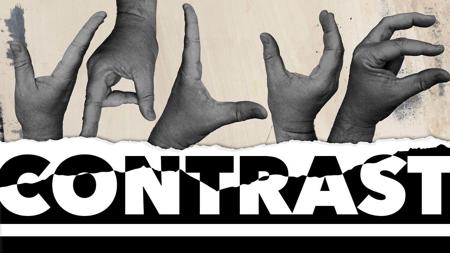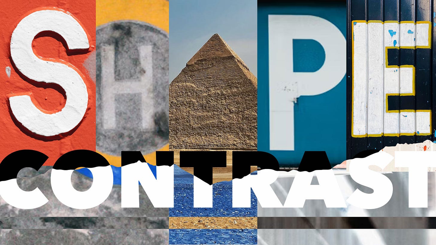 So settle in as we cover contrast in Value, Hue, Saturation, Size, Shape, Weight, Theme, Pattern, Complexity, and Style.